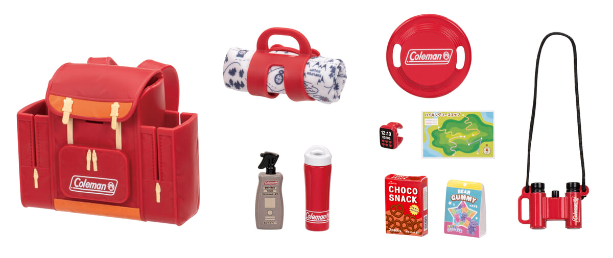 アドベンチャーハットやレインブーツ、ランタンのプリントバッグなど「コールマン」の人気ファッショングッズを「リカちゃん」サイズのミニチュアで再現した小物が付属します。