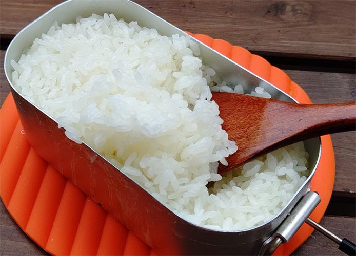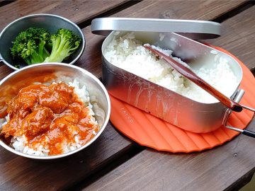 ちなみにカセットコンロや自宅のガスコンロでも使えますが、メスティン自体のサイズが小さいので、小さい口径のコンロを使うか、メスティンの底全体に火力が当たるようにしましょう。吹きこぼれが始まったら弱火にし、チリチリと音がしてきたら火を止めて、後は同じように蒸らします。