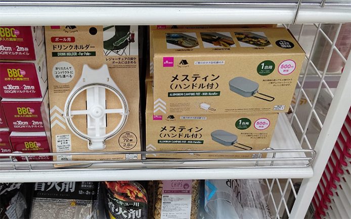 アウトドアショップを市場調査した『ダイソー』が、確実に売れると見込んで投入したのが本商品。「キャンプギアは、スタッキングや省スペース商品が人気なので、市場にある“メスティン”にスタッキングできるサイズに決定。これがコスト削減にもつながり、500円(税抜)という価格を実現できました」と『ダイソー』の広報担当者が話してくれました。