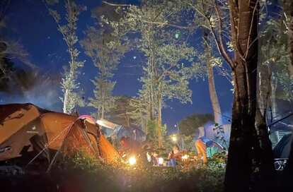 牛やヤギ、ウサギといった様々な動物と遊べる牧場に隣接。天然の芝生を使用したサイトは、最大250組のキャンパーがゆったりと過ごせるほど広大だ。屋根付きのかまどやシャワー、トイレ、売店などを完備する。