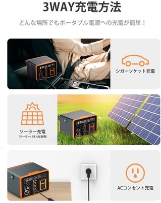 コンセント充電、シガーソケット充電、ソーラー充電の3つの充電方法を実現。どんな場所でもポータブル電源への充電を簡単、便利に行えます。また、AC、DC、USB-A、USB-QC3.0、Type-C、シガーライターソケットの6つの出力方法により、様々な端末に同時接続が可能。キャンプやアウトドア、車中泊はもちろん、停電などの災害時にも欠かせない一品です。
