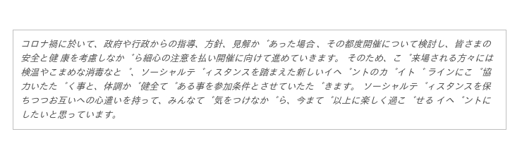 開催にあたって、来場者はもちろん、開催地である長岡市民の安全・安心を確保できるように、県境をまたいでの移動を制限。そのため、チケットの販売対象を「新潟県内に在住している人」に限定した。会場内での感染予防についても最新の情報を随時取り入れ、全員が心から楽しめる・応援できるイベントを目指して、対策を講じていくと発表している。